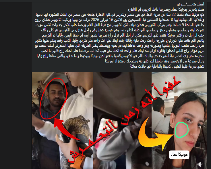 تسبب حادث الاعتداء على مونيكا عماد يوم الاثنين 16 فبراير 2026 داخل أتوبيس هيئة النقل العام في القاهرة، في موجة غضب واسعة بين المواطنين على مواقع التواصل الاجتماعي، بعد أن تعرضت الطالبة البالغة من العمر 22 عامًا للضرب والإهانة من قبل أحد الركاب.
