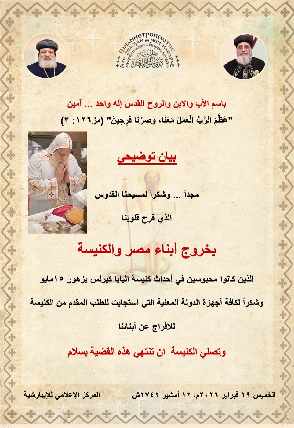 بيان رسمي من المطرانية