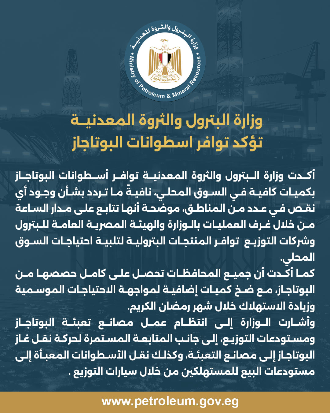 تؤكد الحكومة من خلال هذه البيانات الرسمية حرصها على طمأنة المواطنين بشأن توافر أسطوانات البوتاجاز في السوق المحلي، خاصة في ظل تزايد الاستهلاك خلال شهر رمضان، وهو ما يجعل تأمين الإمدادات أولوية لدى وزارة البترول.