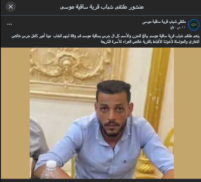 وفاة مينا أمير كامل بعد أسبوع من الاختفاء ونداءات استغاثة بالمنيا ولم يعلن عن سبب وفاتة "ًصور"