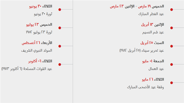 - موعد اول إجازة رسمية قادمة
