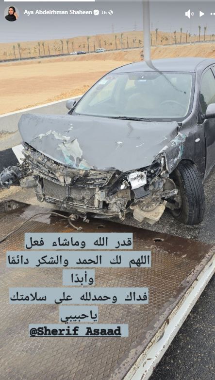وأكدت آية عبد الرحمن من خلال منشور عبر خاصية "الاستوري" على إنستجرام أن زوجها بخير، حيث حرصت على توجيه رسالة دعم له بعد الحادث.