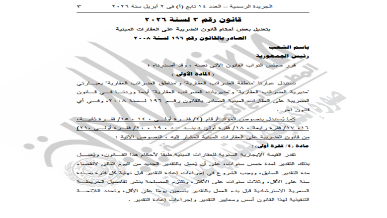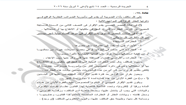 معلومات حول تعديل قانون الضريبة العقارية 2026