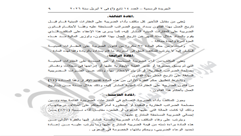 تفاصيل تعديل قانون الضريبة العقارية 2026