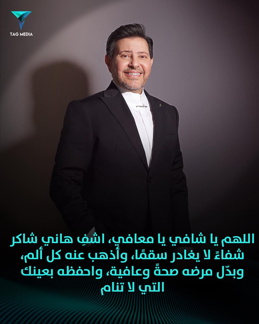 نشر أدمن الصفحة الرسمية للفنان هاني شاكر رسالة دعاء مؤثرة، جاء فيها التضرع إلى الله أن يمنّ عليه بالشفاء الكامل، وأن يرفع عنه المرض ويمنحه الصحة والعافية، وسط تفاعل واسع من الجمهور الذي شارك بالدعاء والتمنيات بالسلامة.